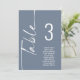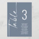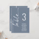 Script Dusty Blue Tischnummer Namen Seating Chart. Editieren Sie Ihre Nummer für jede Tabelle und fügen Sie sie separat in Ihren Warenkorb ein. Das gleiche Design ist auf beiden Seiten, mit einem Hängedisplay, sodass die Gäste ihren Platz oder auf jedem Tisch finden können. In hellblau mit weißen Schriften. Personalisieren Sie einfach die Tischnummer und Ihre Gastnamen. Das gleiche Design ist auf beiden Seiten und wird gleichzeitig aktualisiert, wenn Sie die Wörter zu Ihrem eigenen ändern.