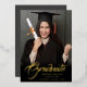 Cartes de faire-part de graduation de feuille d'or élégantes, avec script de calligraphie élégant avec texte moderne en papier réel (les options de couleur sont or, argent et rose) et votre photo d'études supérieures. Le verso de la carte offre des espaces de texte personnalisés pour des informations sur l'obtention du diplôme ou peut être reformulé pour faire de la carte une invitation de grand parti. Écriture blanche sur le gris royal au dos de la carte ou customiser facilement l'arrière - plan à une couleur de votre choix. Pour voir d'autres articles comme celui-ci, visitez mon magasin ici à "www.Zazzle.com/LakeViewCardCo". Merci