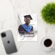 Cartes de faire-part de graduation de feuille d'or élégantes, avec script de calligraphie élégant avec texte moderne en papier réel (les options de couleur sont or, argent et rose) et votre photo d'études supérieures. Le verso de la carte offre des espaces de texte personnalisés pour des informations sur l'obtention du diplôme ou peut être reformulé pour faire de la carte une invitation de grand parti. Écriture en noir sur gris argenté clair sur le dos de la carte ou customiser facilement l'arrière - plan à une couleur de votre choix. Pour voir d'autres articles comme celui-ci, visitez mon magasin ici à "www.Zazzle.com/LakeViewCardCo". Merci