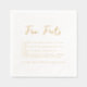 Ajoutez une touche ludique et personnelle à votre journée spéciale avec ces serviettes de Mariage Fun Facts Design. Dotés d'élégants motifs dorés et de "faits amusants" personnalisables sur le couple, ces serviettes sont une façon délicieuse de divertir vos invités tout en offrant un aperçu unique de votre histoire d'amour. Parfaits pour l'heure de l'apéro ou la réception, ils allient raffinement et personnalité, ce qui en fait un ajout inoubliable à votre décor mariage. Caractéristiques principales : Fun Facts personnalisé : Customisez avec des faits amusants et décalés sur le couple pour surprendre et divertir les invités. Elégant Gold Foil : Le script élégant et les détails brillants de feuille d'or ajoutent une touche luxueuse à votre mariage. Qualité Premium : Fabriquées à partir de matériaux doux et absorbants, ces serviettes sont à la fois fonctionnelles et belles. Parfait pour les Mariages : idéal pour les cocktails, les dîners ou les tables de desserts, offrant à la fois style et entrées de conversation. Ces serviettes confèrent à votre mariage un détail amusant et interactif, créant des souvenirs et ajoutant une touche personnalisée à votre journée spéciale. Customisez votre conception : Pour ajouter votre libellé personnalisé, utilisez les cases "Modifier ce modèle de conception" sur le côté droit de l'élément, ou cliquez sur le bouton bleu "Customiser" pour ajuster le texte, les polices et les couleurs. Vous pouvez également ajouter des détails ou des images supplémentaires à votre conception à l'aide de ces outils. Besoin d'éléments correspondants ? Si vous avez besoin d'articles de coordination, comme des cartes de remerciement, des tableaux de sièges ou d'autres articles de papeterie, n'hésitez pas à vous adresser pour une commande personnalisée. Vous avez besoin d'aide supplémentaire ? Si vous avez besoin d’aide qui va au-delà de ce que vous pouvez faire avec l’outil de conception (comme des ajustements complexes de mise en page, l’ajout d’éléments supplémentaires ou la personnalisation détaillée), je suis heureux de vous aider! Il vous suffit d'appuyer sur le bouton "Contacter le Vendeur" et de me faire savoir ce que vous cherchez. Les demandes personnalisées nécessitent souvent plus de temps, donc merci de prévoir jusqu'à 48 heures pour les modifications personnalisées avant que le lien de conception final ne vous soit envoyé.