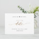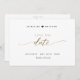 Annoncez votre date de mariage avec ce beau mariage, enregistrez la carte de date. Des détails de script écrits à la main modernes à travers l'extérieur. Style simple et propre. Design blanc et noir avec une touche d'or avec Script et typographie de bloc en teinte dorée sur l'expression "Save the Date". Zone située à l'arrière pour obtenir tous les détails et les noms des mariages, ainsi que la zone pour le site Web mariage ou le message pour vos invités (c.-à-d. "Can't wait to see you here!"). Même design dans la présentation carte postale est également disponible.