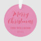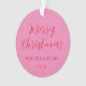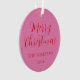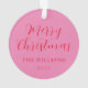 Ce minimaliste, moderne, gardez saké féminin girly personnalisé nom de famille de noël ornement, dispose d'élégant script de calligraphie en rose et rouge vif.