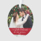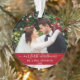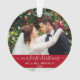 Élégant stylish tendance Script Notre premier Mariage de Noël Photo Rouge Ornement avec des flocons de neige retour