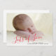 Un design carte photo simple et moderne pour annoncer votre nouvelle arrivée. Ce design comprend l'expression "beaucoup d'amour" en rouge délicat et en lettres, ainsi que les détails du nom et de la naissance de votre bébé, superposant une version de fond de sang de votre photo préférée de nouveau-né. Ce design est parfait pour un bébé valentin.