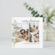 Die moderne Weihnachtskarte des Fotos bietet Ruhe, Liebe und Freude mit Foto und botanischen Beeren und Blätter.