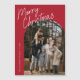 Script Merry Christmas Arch Foto Magnetic Card bietet ein lustiges und modernes Drehbuch auf einem gewölbten Foto, zusammen mit einem zweiten Foto auf der Rückseite und Raum für Ihre Nachricht.
