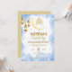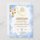 A script gold and blue aqeeqah invitation for a baby boy with Islamic theme. The card is easy to customize with your wording, font, font color, paper shape options, and choice of paper types. The subtle look is stunning on the front, while the gold-contrasting backside makes this akika dinner invitation truly unique.