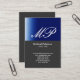 Script Gray Blue Strip Monogram Business Card Visitenkarte