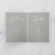 Programme de mariage moderne double face blanc et gris. Modifiez ce programme de mariage avec votre nom, dates, libellé de la cérémonie, accompagnateurs de mariage et merci. Un programme simple mais élégant remplace simplement un exemple de texte par vos propres informations de mariage. Création de texte graphique simple d'origine par www.mylittleedenweddings.com