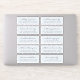 Einfach zu personalisieren, Namen und Adressen / individuelle Hochzeitsadressen Etikettenaufkleber für Gäste. Diese schicken Hochzeitsadressen-Labels enthalten Ihre Hochzeitsgast-Namen in schwarz-eleganter Schrift-Kalligrafie auf pastellblauem Hintergrund. Fügen Sie einfach Ihre persönlichen Namen und Adresse Ihrer Hochzeitsgäste hinzu. Exklusiv für Sie entworfen von Happy Dolphin Studio. ***BESTELLEN SIE BITTE KLEINER ALS 18 Zentimeter!** 8" X 8" SCHUHE (2 X 5 ETIKETTEN) GRÖSSE EINZELKENNZEICHNUNGEN: 1.35" X 3.64" 6" X 6" SCHACHTEL (2 X 5 ETIKETTEN) SIZE INDIVIDUELLE LABELS: 1,09" X 2,86"