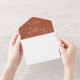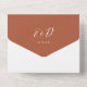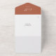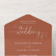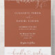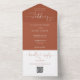 Alles in einer Terracotta Hochzeitseinladung mit eleganten Herz Schrift Typografie und Monogramm Initialen. Die Einladung enthält eine perforierte RSVP-Karte mit Ihrem personalisierten QR-Code für Hochzeiten. Entwickelt von Thisisnotme©