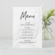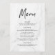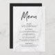 Carte de menu mariage moderne et élégante avec une police de caractères noir tendance, arrière - plan en marbre blanc et des espaces réservés pour votre menu de mariage personnalisé. L'arrière du menu mariage en marbre blanc peut être changé en une couleur de votre choix grâce à l'outil Personnaliser.