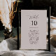 Notre panneau de carte de numéro de table comporte un script écrit à la main et une typographie classique pour une façon minimale et élégante d'afficher les numéros de table à votre mariage ou événement.
