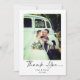 Il s'agit d'un carte de remerciements de mariage photo moderne et minimaliste avec un script manuscrit, associé à une police de machine à écrire. Modifiez facilement les couleurs, le texte et la photo. L'envers comprend un message de remerciement que vous pouvez personnaliser ou supprimer complètement si vous préférez écrire votre note de remerciement à la main. Cette conception applique un filtre à votre photo pour une légère sensation vintage. Vous pouvez supprimer ce filtre en cliquant sur le bouton bleu et en sélectionnant les filtres à modifier. Veuillez contacter le concepteur pour toute question relative à ce design.