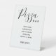 Fügen Sie diese minimalistischen und modernen Pizza-Bar-Plexiglas zu Ihrem Hochzeitsempfang hinzu. Personalisieren Sie den Text mit den verfügbaren Pizzatypen oder fügen Sie den gewünschten Text hinzu. Einfaches Kalligrafiedesign in Schwarz/Weiß mit zeitlosem Script-Schriftart-Stil.