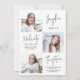 Script moderne noir Faire-part de graduation avec capuchon de graduation et 4 photos, simple et amusant. Personnalisez-le avec vos propres photos et informations sur les grandes fêtes.