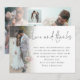Script moderne 6 Photos Mariage Love Thanks. L'amour et les remerciements sont dans un style manuscrit. Personnalisez facilement le reste du texte à vos propres détails et remplacez les six exemples de photos à l'avant et à l'arrière par les vôtres en tant que garde-manger pour vos invités.