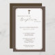 Script Élégant Moderne Taupe Baptême Invitation. Personnalisez avec les détails de votre événement. Nom du bébé baptisé, emplacement de l'église, emplacement de l'accueil et informations RSVP.