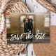 Ce mariage moderne sauve la date faire-part dispose d'une photo horizontale plein fond et un script moderne "Save the Date" en blanc. Le dos de la carte est noir. TOUTES les couleurs sont personnalisables - couleur arrière, couleur texte, même couleur script! Il suffit de cliquer sur "modifier en utilisant l'outil de conception" dans le menu déroulant.