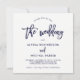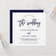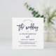 Cette faire-part de mariage moderne, marine et blanche présente une typographie de script branchée et une disposition simple et élégante.