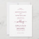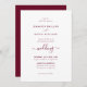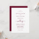 Elégante et minimaliste invitation de mariage bordeaux avec un script moderne. Personnalisez facilement en ligne. Objets correspondants disponibles pour compléter ce faire-part de mariage moderne.
