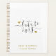 Carnet wedding planner sur mesure avec "future Mrs." en calligraphie moderne et design de coeur d'or.