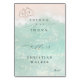 Beau turquoise abstraite aquarelle scintillante vague d'océan et les coeurs dans l'arrière - plan de plage de sable, surmonté d'un script élégant et d'élégante police serif, moderne et simple. Cartes d'endroit pliables mariage pour mariage nautique plage, mariage de destination tropicale, mariage sur le thème de l'océan côtier en été.