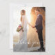 un beau carte de remerciements mariage tendance avec lettrage de script et design photo romantique double face. les détails du texte peuvent être édités. vous pouvez télécharger vos propres photos.