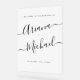 Bienvenue invités à votre événement avec ce minimaliste Script moderne Welcome Frost Acryllique Signe. Présentant un design élégant et contemporain, ce panneau combine une typographie de script élégante à une base acrylique claire, ce qui en fait un ajout chic à n'importe quel lieu. Customisez avec vos noms et votre date de mariage. Tout le texte est entièrement personnalisable. (Une transparence blanche est appliquée derrière le texte pour donner un aspect gelé à ce signe acrylique)
