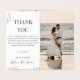 Célébrez votre journée spéciale avec ce carte de remerciements mariage de texte simple et moderne. La carte présente un texte élégant et contemporain qui express magnifiquement le "Merci" dans une police fluide et élégante. Son design épuré et simple permet à votre photo mariage chère d'être le point focal, créant une sensation personnelle et intime. Le design élégant et les accents subtils soulignent la photo tout en gardant le message clair et honnête. Parfait pour les couples qui veulent mélanger l'esthétique moderne avec la gratitude sentimentale, cette carte est le gardien parfait pour remercier vos invités