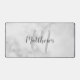Monogramme personnalisé et cadeau de nom avec nom personnalisé en gris style de police de script moderne et monogramme en gris clair style de police de script moderne comme arrière - plan, sur arrière - plan de marbre blanc.