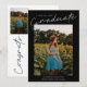 Cette combinaison moderne et élégante d'invitation à la remise de diplômes de photographie élégante comprend une superposition de script et un nom personnalisable, l'école et la photo sur le devant. L'arrière-plan offre des fêtes et des détails de l'événement avec 2 photos supplémentaires. Une excellente façon de présenter votre diplômé.