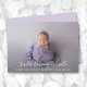 Elegant süße Geburtsankündigungen zeigen Ihr liebstes neugeborenes Foto in voller Blüte, den Namen Ihres kleinen Mädchens in weißer Schrift, die Geburtsstatistiken und Ihre Namen in schick weißer Schrift, zentriert auf der Unterseite. Ändern Sie die Farbe auf der Rückseite in eine beliebige Farbe, die Ihr Foto unter weißen Polka-Punkten Anzug, oder entfernen Sie die Punkte. Sie können auch weitere Fotos auf der Rückseite hinzufügen!