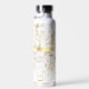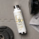 Script Name & Black Monogram, White & Gold Marmor Trinkflasche