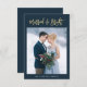 Un magnifique design d'image mariage avec une photo de la mariée et du marié, et un texte de script en faux or. Les caractéristiques de cette carte peuvent être personnalisées.