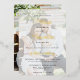 Un faire-part de mariage photo moderne et tendance double face affichant vos informations mariages sur l'une de vos photos préférées avec une superposition transparente et accentué par une typographie de script élégante en feuille d'or véritable. Facilement personnalisable avec vos détails de cérémonie mariage en gris foncé et les noms de mariée et de mariée en papier peint, pour un look romantique mais moderne et élégant. Le dos de la carte comporte une deuxième image, vos monogrammes et votre date de mariage.
