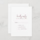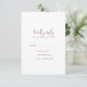Cette carte RSVP simple en or rustique rose est parfaite pour un mariage campagnard. Le design sobre et moderne rose or rose vif et blanc présente une calligraphie manuscrite et fantaisie unique avec un style boho minimaliste contemporain. Personnalisable dans n'importe quelle couleur. Gardez le design minimal et simpliste, en l'état, ou personnalisez-le en ajoutant vos propres graphiques et artwork.