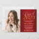 Une classe de police de script élégante de 2025 graduation fête faire-part. Montré en or, blanc et rouge. Parfait pour un baccalauréat, un diplôme d'études supérieures ou une fête de fin d'études supérieures ! Les dessins sont des illustrations et des graphiques imprimés à plat - pas du papier doré réel. L'ÉCHANTILLON DE PHOTO N'EST PAS INCLUS. REMPLACEZ PAR VOTRE PROPRE PHOTO AVANT DE COMMANDER.