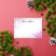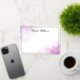 Cartes de notes élégantes avec votre nom, initiales monogrammes ou autre texte personnalisé dans une police de script de calligraphie romantique sur des éclaboussures de peinture d'aquarelle violette. Véritable feuille (argent, or ou or rose).