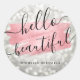 Script Rose Gold Silver Lights "Hello Beautiful" Runder Aufkleber
