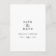 Ce script rustique sauvegarder la date annonce carte postale est parfait pour un mariage campagnard. Le design simple et moderne en noir et blanc présente une calligraphie manuscrite unique et fantaisiste, avec un style boho minimaliste contemporain. Personnalisable dans n'importe quelle couleur. Gardez le design minimal et simpliste, en l'état, ou personnalisez-le en ajoutant vos propres graphiques et artwork.