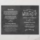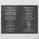Les programmes de la feuille de cérémonie de mariage présentent "Bienvenue au Mariage de" en écriture blanche et un arrière - plan avec une texture noir tableau noir. Personnalisez le texte personnalisé pour votre fête de mariage, informations de cérémonie, et message de remerciement. Remarque : ces programmes de papier poids texte arrivent à plat et nécessitent un pliage pour être assemblés.