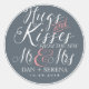 Vintager und rustikaler Aufkleber für die Gastgeschenk Hochzeit. Dekoriert mit handgeschriebenem Kalligraphieskripten-Schriftart. Umarmungen und Küsse aus dem neuen Herrn und Frau Customize die Braut und Bräutigam Namen. Ideal für Gastgeschenk Hochzeit, Verlobungsfeier, Brautparty, Jubiläumsfeiern oder jeden besondere Anlass. Sie können die Hintergrundfarbe auch an Ihre Designfarbe anpassen.
