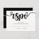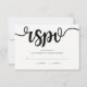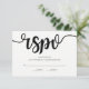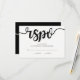 Script simple et élégant | Les cartes RSVP de mariage modernes sont parfaites pour les couples qui veulent un design simple mais élégant d'invitation de mariage. Caractéristiques "RSVP" en script noir. Étincelle & Parties scintillant © Le design présente les noms des mariés et des mariés dans une police de caractères élégante. Affiché en noir et blanc mais peut être customisé à vos couleurs mariages pour le texte et l'arrière - plan. Ajoutez d'autres graphiques, photos ou monogrammes pour personnaliser ce modèle.