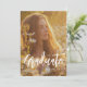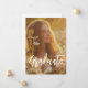 Ce faire-part de fin d'études décontracté branché présente deux photos de l'université ou du baccalauréat. Décontracté, un script blanc moderne apparaît sur la couverture photo avant avec une photo du diplômé sur le dos avec une simple police noire pour le faire-part. Vous pouvez ajuster le libellé au verso de la carte pour en faire soit une simple faire-part de graduation, soit une invitation de groupe. Un design simple et élégant pour la remise des diplômes de cette année !