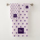 L'ensemble de serviettes de bain à rayures violettes violettes à script initial tendance fait partie de la collection "Stripes and Flowers : Bain, Plage, Yoga, Voyage". La collection comprend tout ce qui a trait à votre salle de bain, la baignade à la piscine ou à la plage, la détente par la journalisation, faire du yoga, jouer aux cartes ou frisbee. Et, bien sûr, aller à la plage avec votre sac à dos préféré, sac de toilettes assorti, et coques électroniques. Il y a aussi des cartes qui célèbrent les réunions et vous donnent l'occasion d'invitation votre nouvelle connaissance pour connecter virtuellement. Le design ludique est composé de rayures violettes avec alternance de rangées de fleurs violettes. Vos initiales en écriture tendance sont imprimées sur le dessus et le bas du tissu de visage, serviette et serviette de bain. Ajoutez vos initiales pour en faire la vôtre. Pour toute demande de design sur mesure ou pour toute assistance en matière de personnalisation, veuillez nous contacter à l'adresse info@KBMD3signs.com .