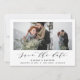Ein schönes Multi-Foto Script Text elegante moderne Hochzeit speichern Sie die Datumskarte, ideal für das Versenden von Urlaubswünsche an Familie und Freunde. Passen Sie die Farbe des Backers an, um Ihre Karte zu personalisieren. Teil einer Sammlung.