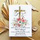 Script Watercolor Floral Cross Taufe Einladung zeigt ein einfaches Kreuz mit rot, korallen, rot und weiß Blume und Grün mit Ihrem Taufe Einladung Informationen unten. Personalisieren Sie den Text durch Bearbeiten in den bereitgestellten Textfeldern. Entworfen von ©Evco Studio www.zazzle.com/store/evcostudio