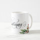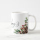 Traditionelles Drehbuch Weihnachten Tasse. Zwei Aquarellfarben Weihnachtsdekoration mit roten Beeren, Grünpflanzen und Kiefernfüßen auf jeder Seite der Tasse. Ein Wirbler Skript-Schriftart im Zentrum der Tasse Sprichwort Frohe Weihnachten. Diese Tasse ist perfekt für die ganze Feriensaison. Heiße Schokolade, heute, Kaffee oder Tee? Mit dieser dekorativen Tasse können Sie Weihnachten richtig genießen. Für jeden in der Familie und im Set der Weihnachtstisch für Lasur, Langes Frühstück oder servieren Ihre Gäste beim Besuch. Oder was ist mit einem Geschenk an Oma? Sehen Sie sich die anderen passenden Produkte in dieser Kollektion für ein zusammenhängendes Thema an.