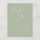 Voici notre magnifique script lunatique | carte de remerciements de table verte sauge parfait pour votre simple fête de printemps de boho moderne. Notre design élégant comprend une palette de couleurs vives et pastel avec un script de calligraphie vintage et chic. Que vous préfériez un style minimaliste ou classique, notre produit éditable unique offre luxe et élégance, parfait pour créer une touche élégante et romantique qui rendra votre journée spéciale inoubliable. Contactez-nous pour toute question sur le design, et laissez-nous vous aider à faire le mariage de vos rêves.